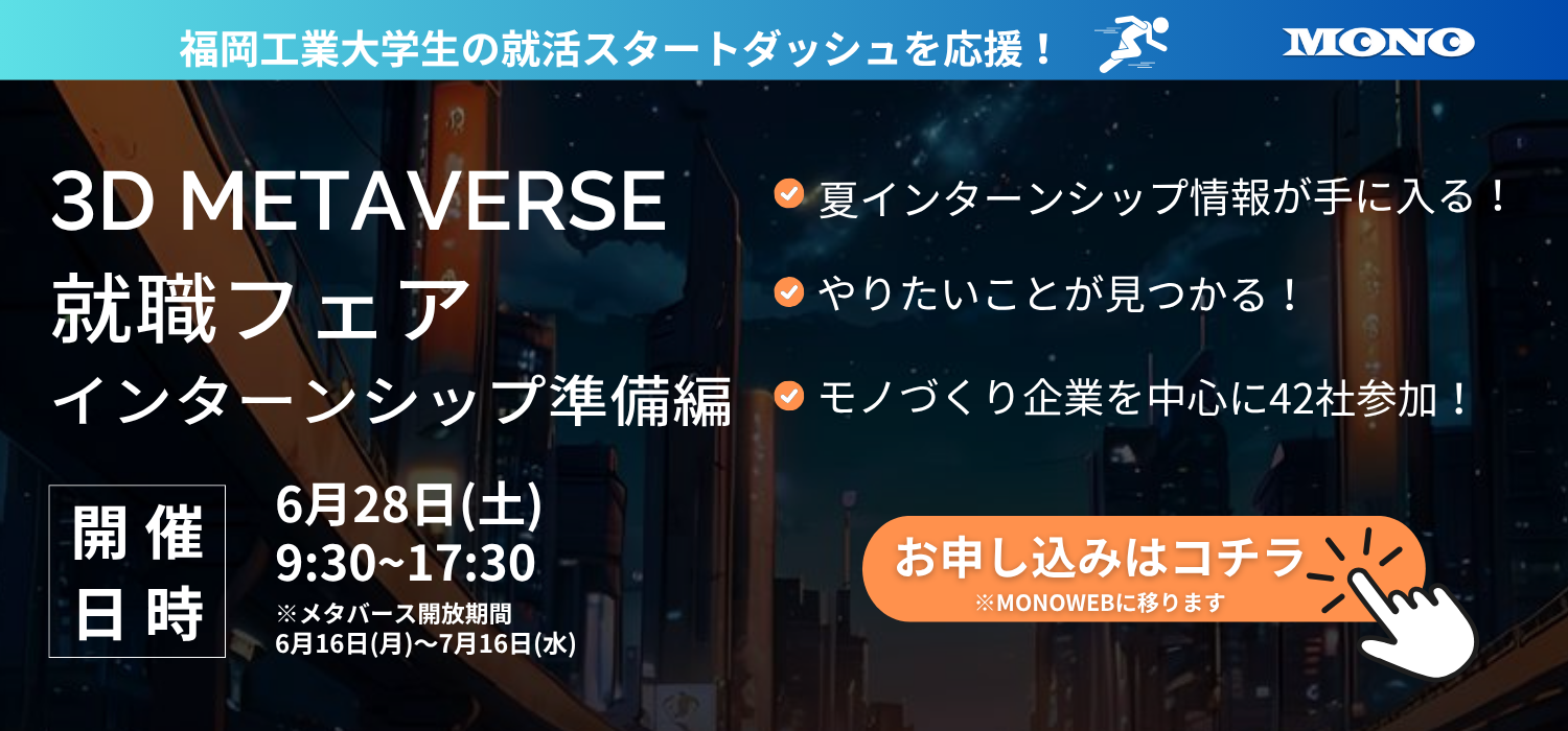 夏インターン・本選考前に後悔しないよう、 今の時期から動き出し、満足できる福工大生としての就活をスタートしませんか?